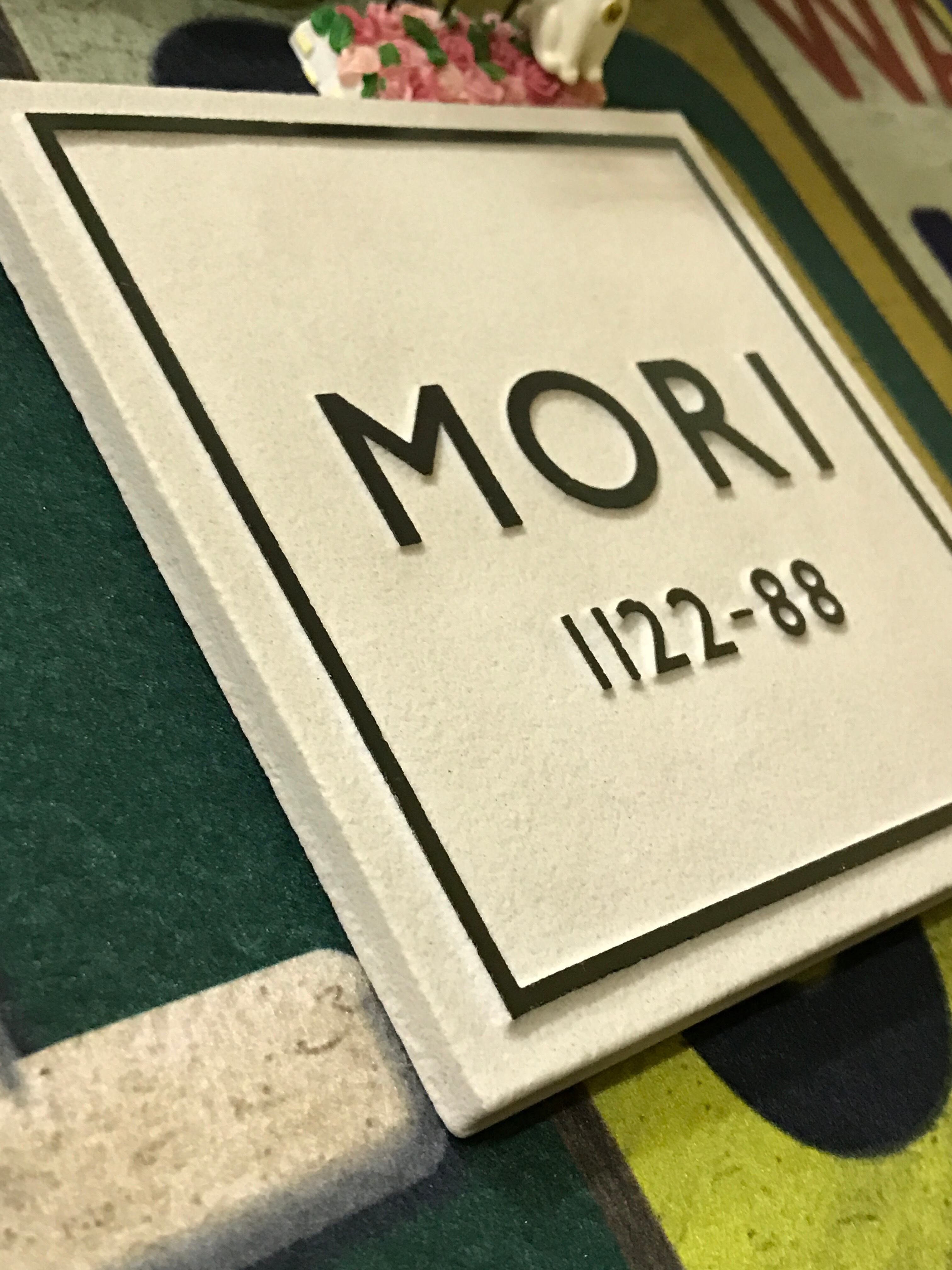 黒タイルにRH風イメージでお名前と番地を浮彫り彫刻しました(灬˘╰╯˘灬)♥。・゚